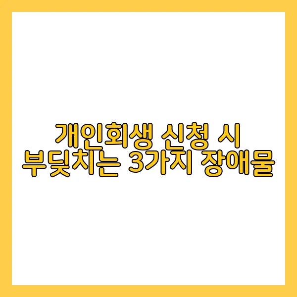 개인회생은 과중한 부채로 고통받는 이들에게 구제책을 제공하는 중요한 제도입니다. 그러나 개인회생 신청 과정에는 여러 가지 복잡한 장애물이 존재합니다. 이 포스트에서는 개인회생 신청 시 주요하게 대두되는 3가지 장애물을 상세히 살펴보고자 합니다.