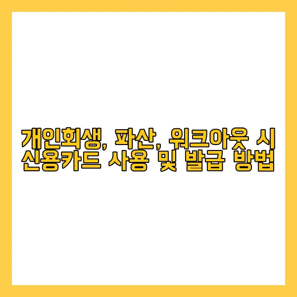 신용 문제를 겪는 분들을 위해 개인회생, 파산, 워크아웃 제도 신청 시 신용카드 사용 및 발급 방법에 대해 자세히 살펴보겠습니다. 이 정보는 재무 건강 회복의 중요한 단계인 신용관리에 큰 도움이 될 것입니다.