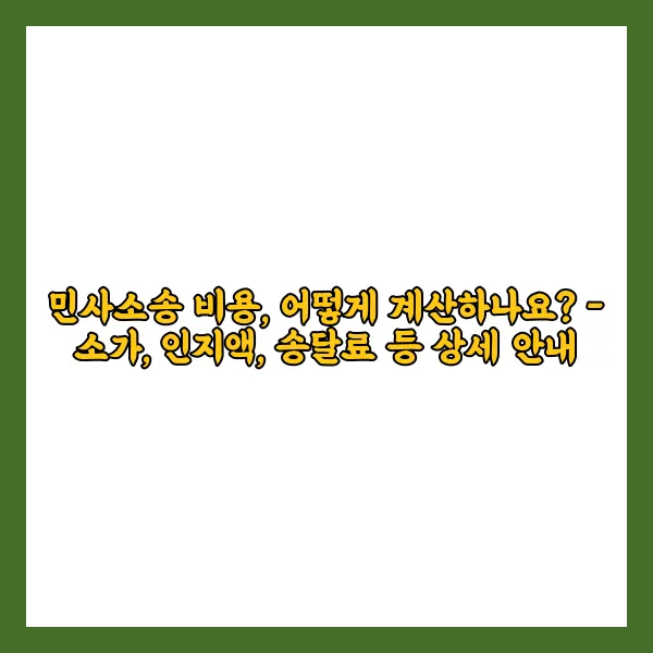 민사소송을 준비하는 과정에서 가장 중요하게 고려해야 할 사항 중 하나는 바로 소송 비용 계산입니다. 소송을 제기하기 전에 소가 산정, 인지액, 송달료 등 필수적인 소송 비용을 정확히 파악해두어야 성공적으로 소송을 진행할 수 있습니다.