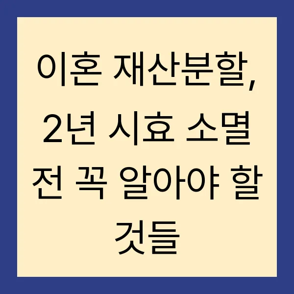 이혼은 인생에서 가장 힘든 경험 중 하나일 것입니다. 복잡한 감정 속에서 법적, 경제적 문제까지 해결해야 하니 말이죠. 특히 재산분할은 미래를 설계하는 중요한 문제인 만큼, 2년이라는 시효를 놓치지 않도록 주의 해야 합니다! 이 글에서는 이혼 재산분할의 핵심 정보와 시효 소멸 전략, 그리고 전문가의 조언까지, 여러분이 꼭 알아야 할 모든 것을 담았습니다.