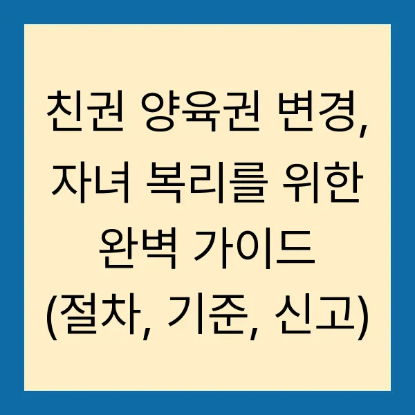 자녀의 행복은 부모의 이혼 후에도 변함없이 중요합니다. 이혼 후 상황 변화로 자녀의 양육 환경 조정이 필요할 수 있습니다. 이럴 때, 친권 및 양육권 변경을 고려하게 되는데요? 이 글에서는 변경 절차, 법원의 판단 기준, 신고 의무, 그리고 자녀의 복리 증진을 위한 핵심 정보들을 꼼꼼하게 다뤄, 여러분의 궁금증을 해결해 드립니다! 변경 사유부터 성공적인 소송 전략까지, 자녀의 미래를 위한 최선의 선택을 돕는 완벽 가이드, 지금 시작합니다!